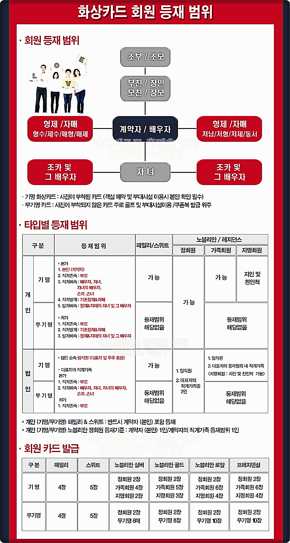 5매의 회원카드가 발급되며 개인,