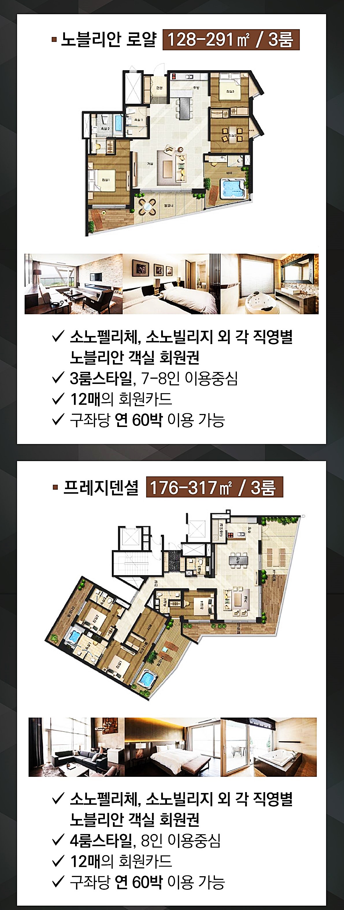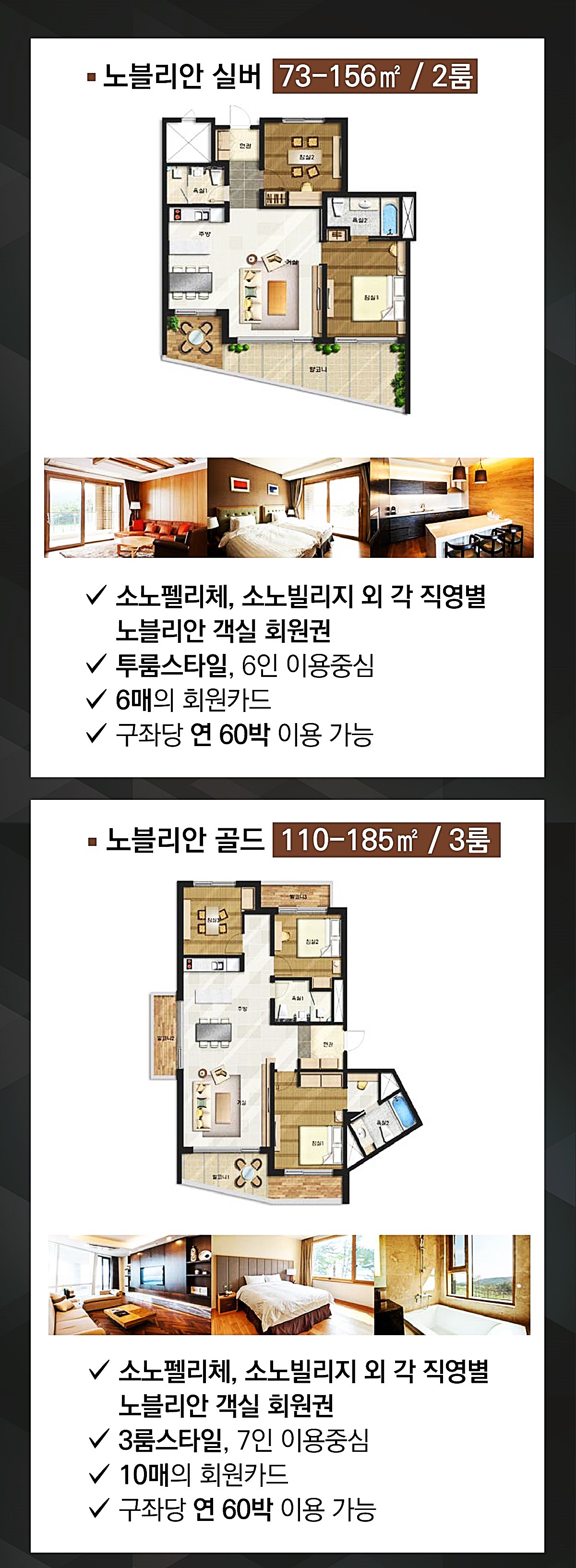 각 직영 노블리안 객실 회원권으로 이뤄져